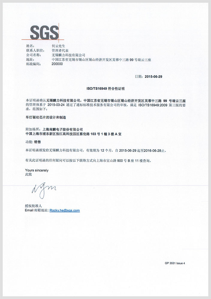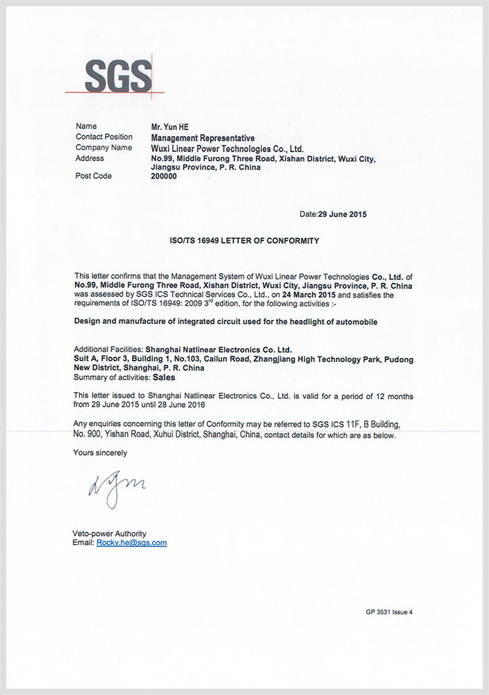 Our manufacturing from 2013 Wuxi Lin force center was founded at the beginning, is actively preparing for the work of quality system certification, in the 2015.3 months through on-site audit of SGS company, achieved ISO9001:2008 quality system certificate and ISO/TS16949 certificate of compliance. And 2016.3 months, respectively, 2017.3 consecutive months of successful supervision through the SGS audit, has started the 2015 version of the system version of certification work.